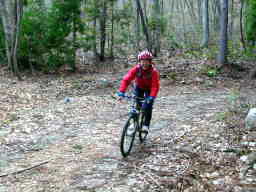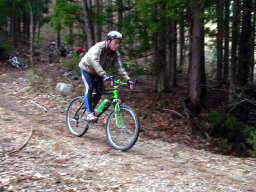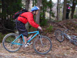 | やって来ました。下りのセクション! 重心移動にブレーキング。前方をよく見て下りましょう! |
