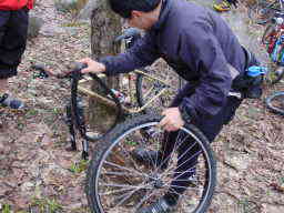 | ちょっとコーヒーブレイク?・・・おっとパンク修理中でした! (初めてなのに、手際良かったです) |