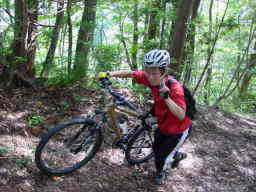 | チャレンジ隊のご褒美は、ウキウキ・シングルトラック下りです。 Go! |